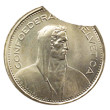 Ein weiteres Fehlerpotential besteht im falschen Zusammensetzen der drei Randsegmentstempel. Daraus resultierende Fehlprägungen gibt es beispielsweise deren drei beim 5 Franken 1931.
