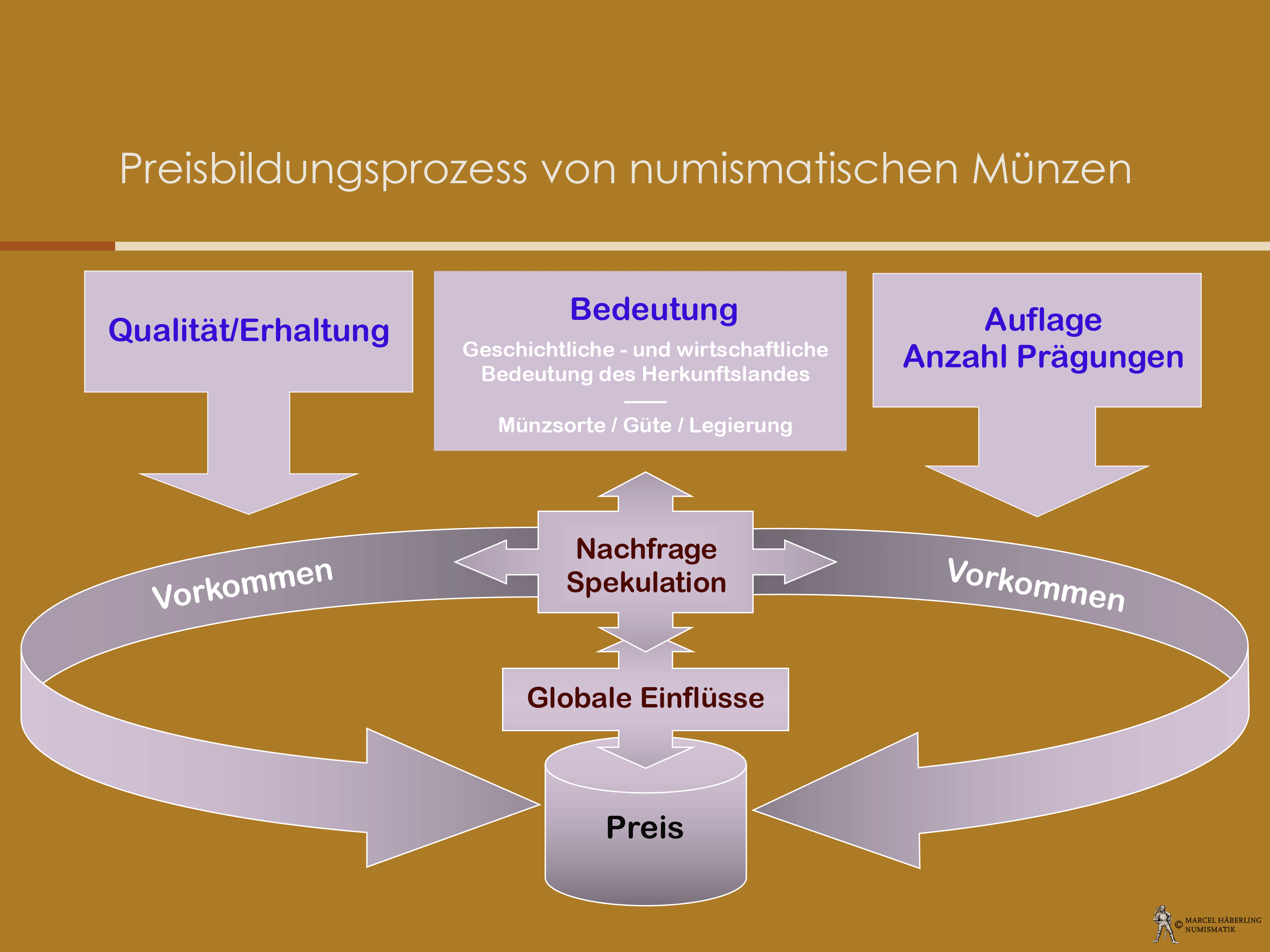 Wie bildet sich eigentlich der Wert, beziehungsweise der Preis von numismatischen Münzen. Ich habe versucht diesen doch recht komplexen Prozess, anhand einfacher Grafiken zu veranschaulichen. Es sind Ausschnitte aus meiner Pärsentation Kiwanis 2017 in Luzern.