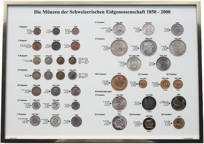 - Münztableau « Die Münzen der Schweizerischen Eidgenossenschaft»